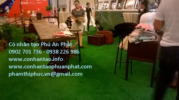 mới, nhiều người trầm trồ tưởng cỏ thật". Cỏ nhân tạo làm thảm bàn ăn, tạo
